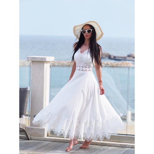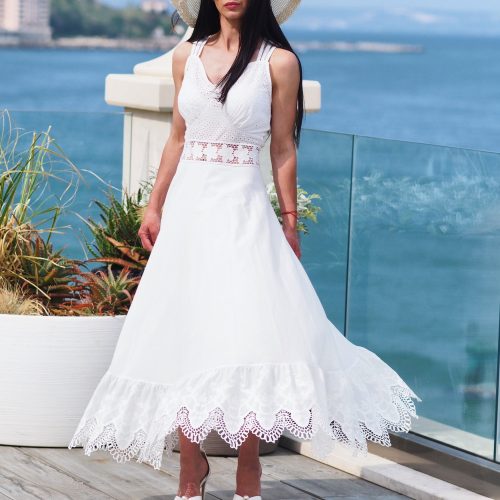White Cotton Mini Summer Dress Sleeveless Strappy With