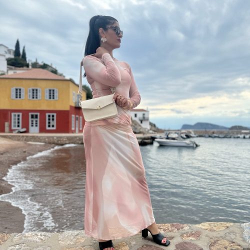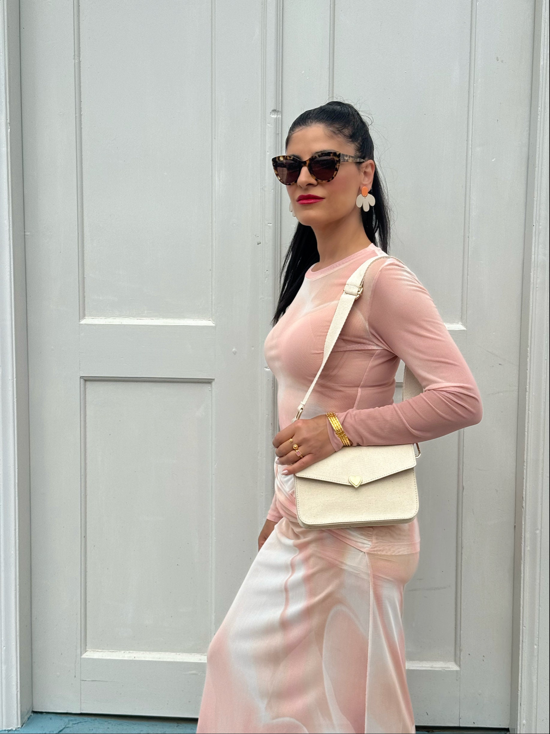 Beige Leather Shoulder Bag Canvas Handbag Women Purse