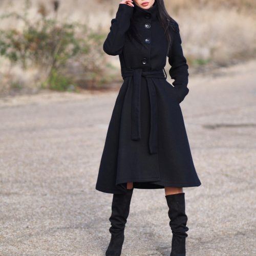 High collar adds sophistication and warmth