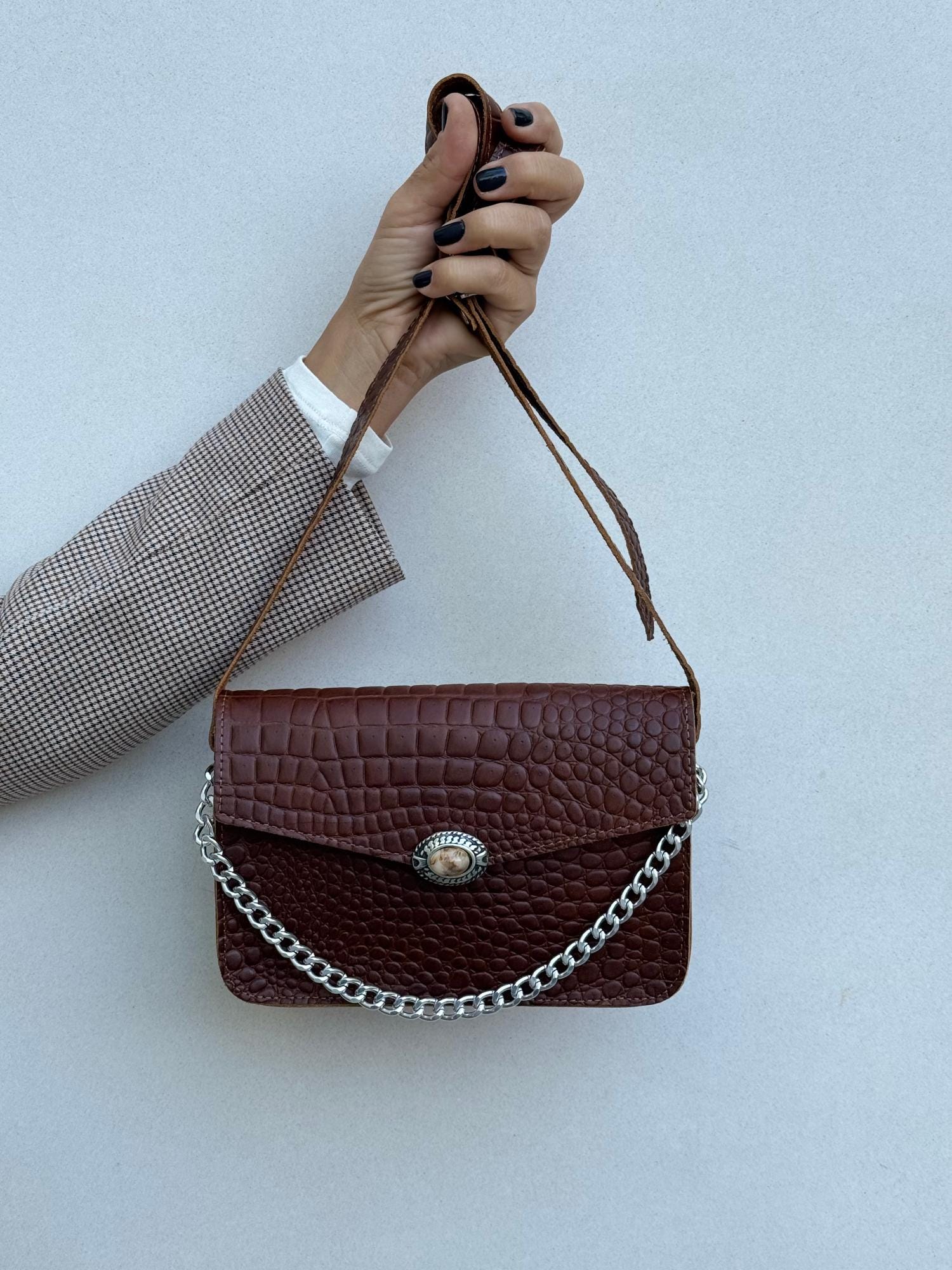 Brown Leather Shoulder Bag Women Handbag Small Crossbody