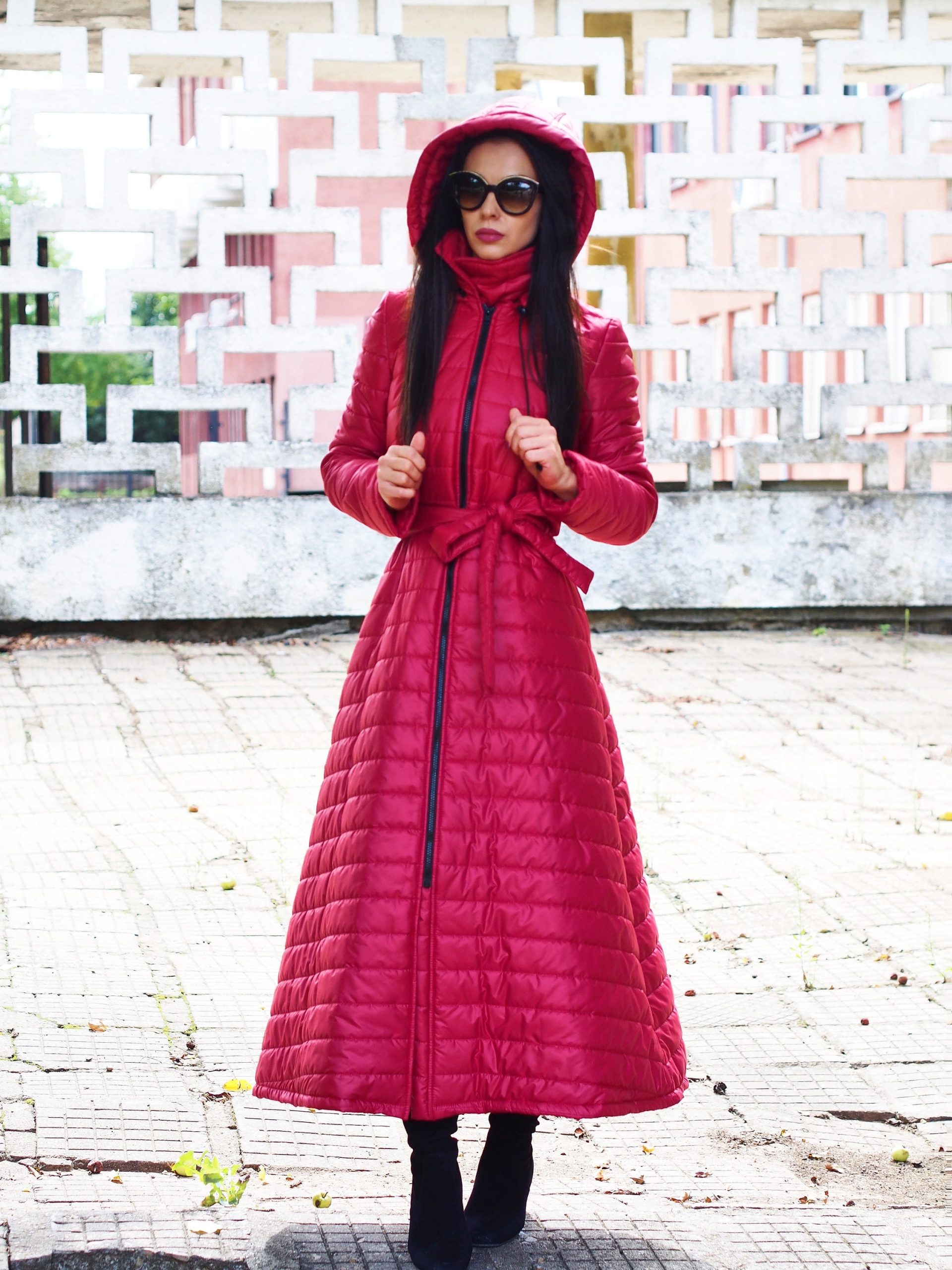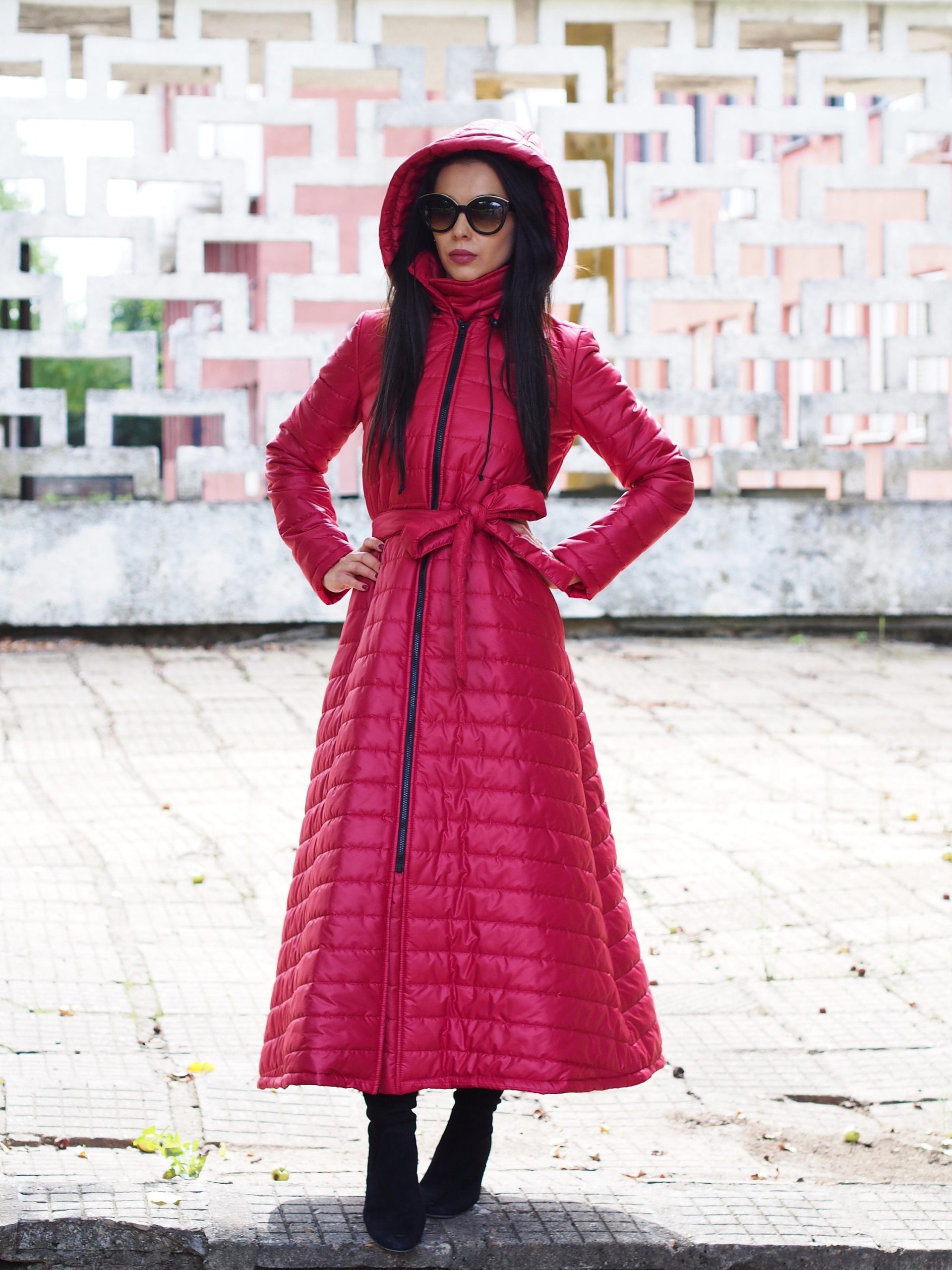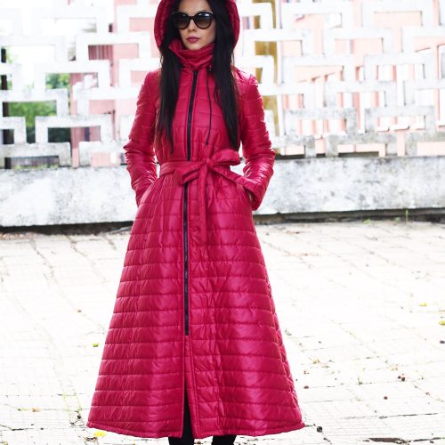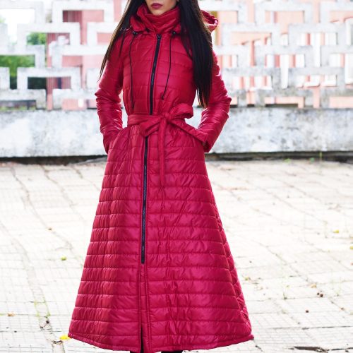 Red Long Coat Women Winter Quilted Qulted Jacket