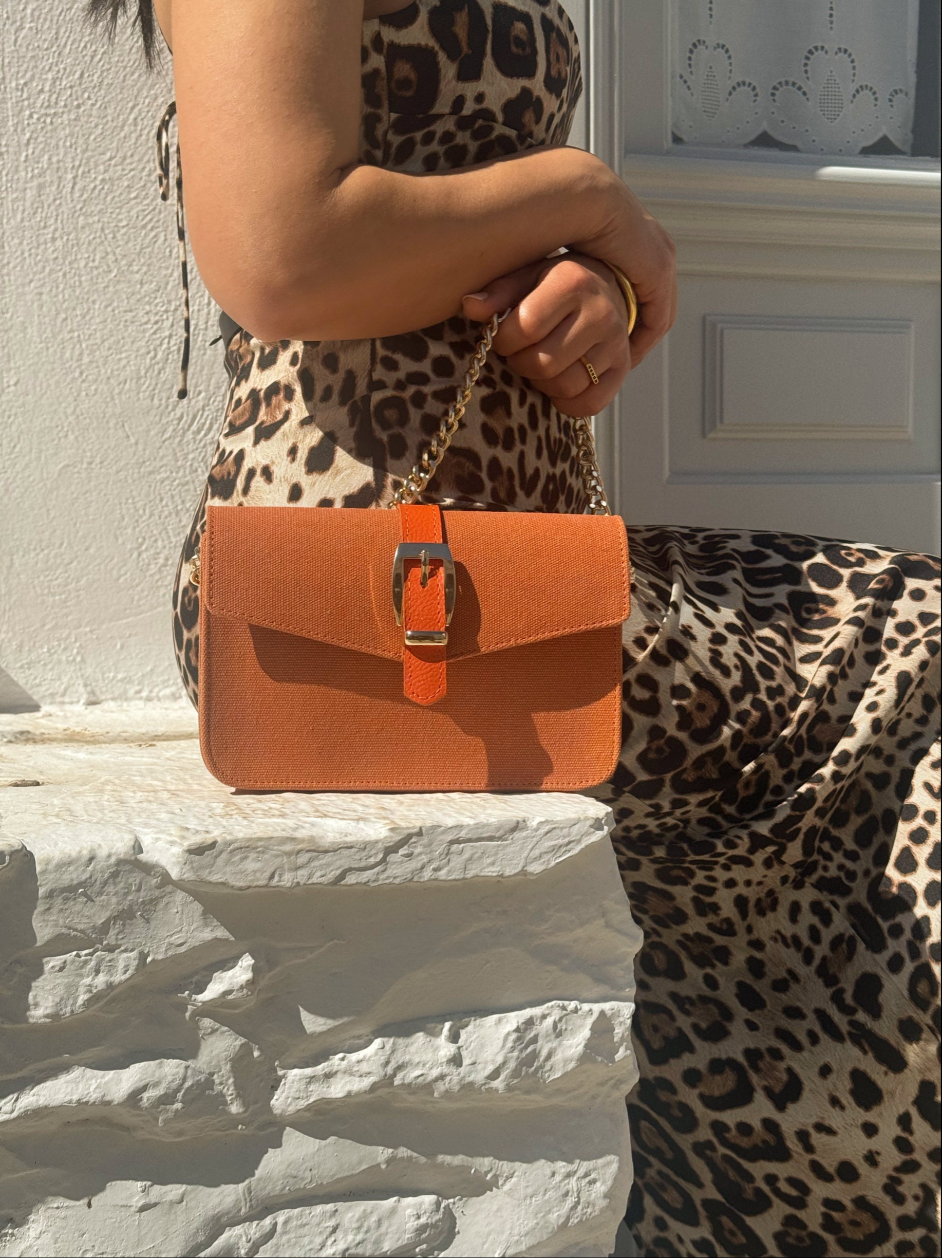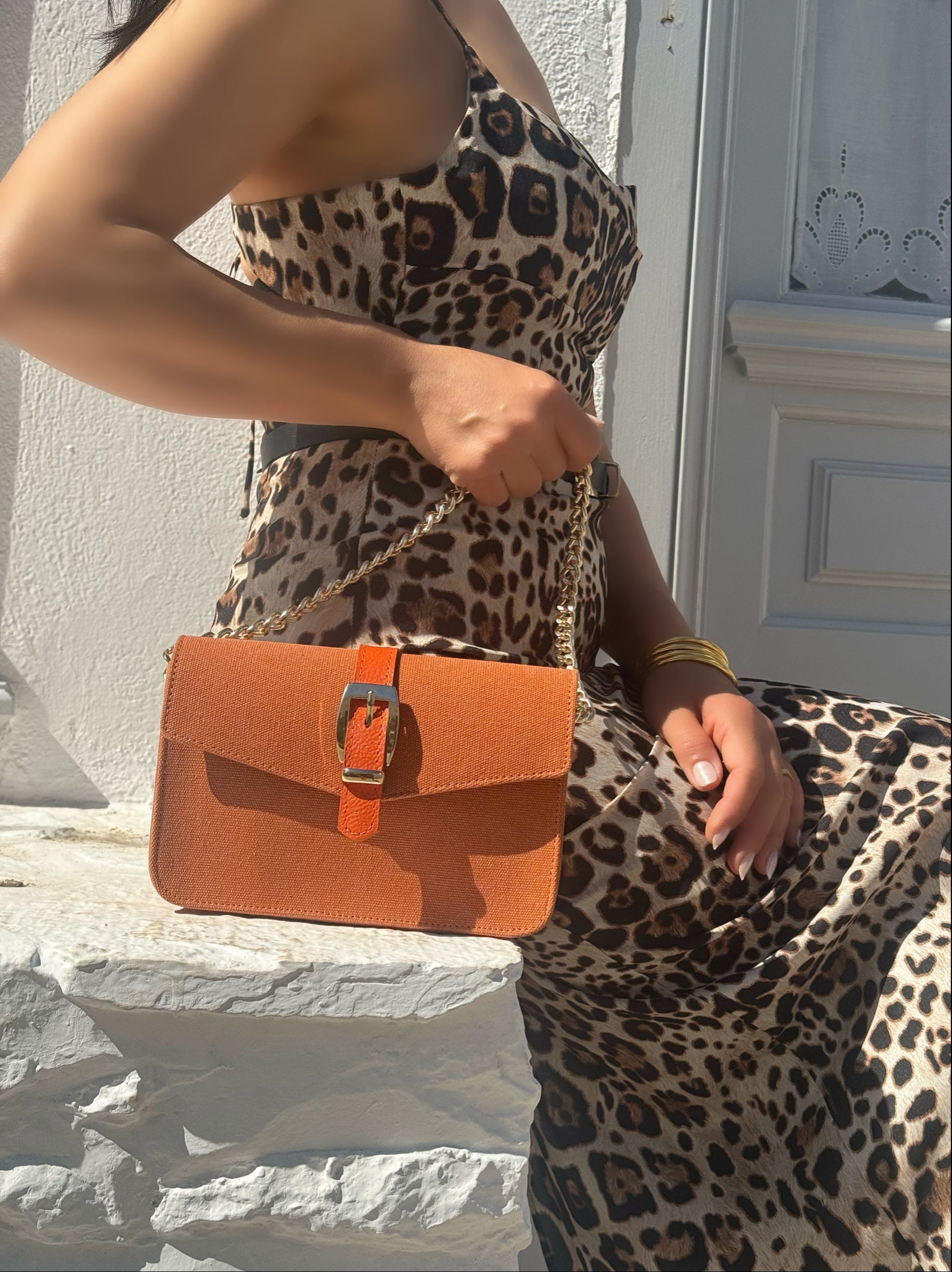 Women Leather Shoulder Bag Canvas Handbag Crossbody Purse